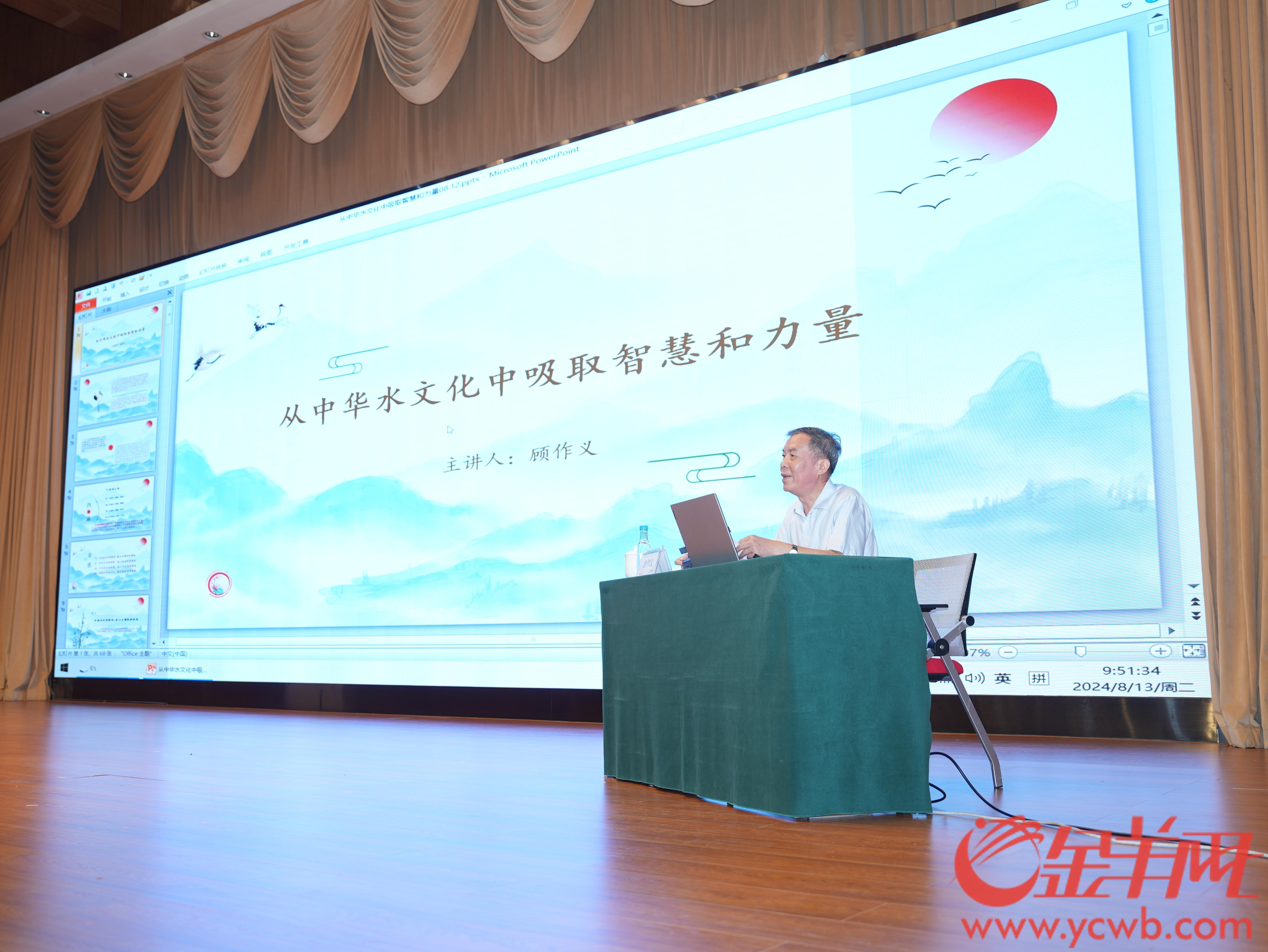 作为中国传统文化研究学者,顾作义在仪式后的讲座环节作《从中华水文化中吸取智慧和力量》演讲。“没想到你们这么快就把队伍成立起来了。”顾作义在演讲中透露,广州水投集团与广东省志愿者联合会从表达意向到队伍成立,仅耗时一个月,行动迅速。顾作义认为水务行业是涉及国计民生的行业,既需要考虑经济效益更需要考虑社会效益,当中还特别需要考虑公益性质。