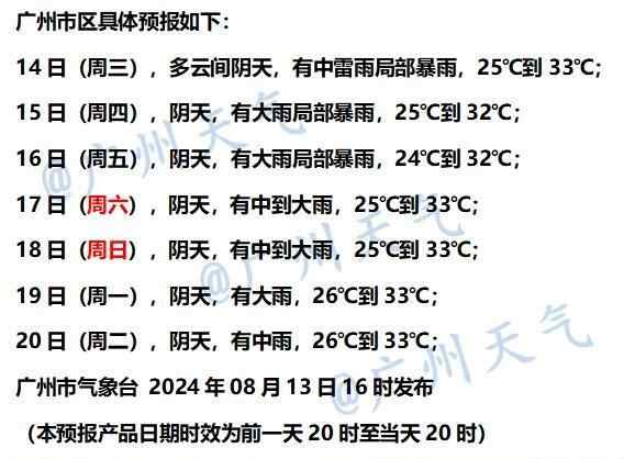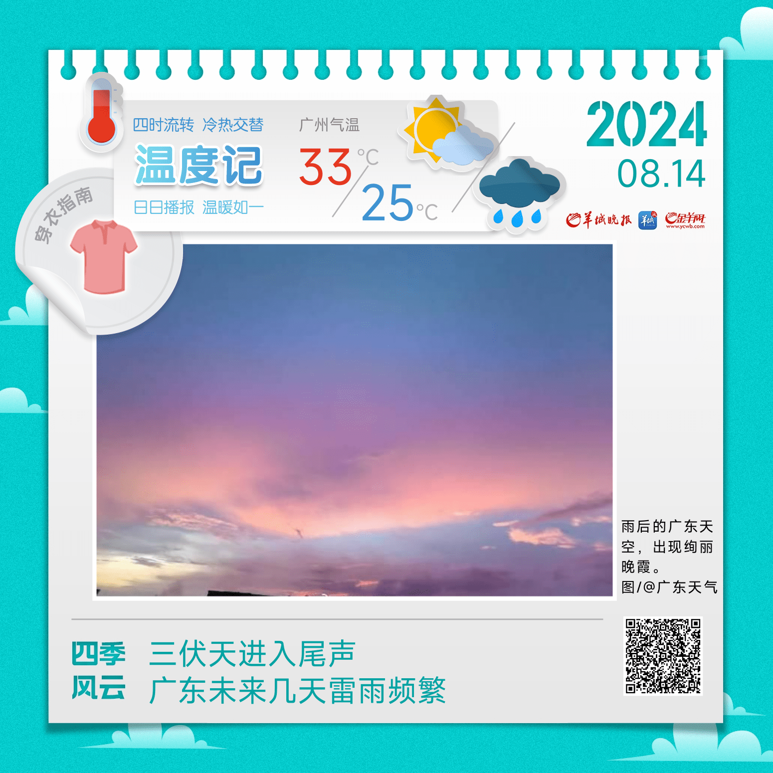 14日,多云间阴天,有中雷雨局部暴雨,25℃到33℃;