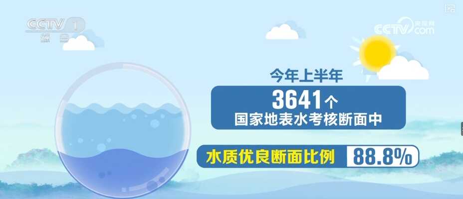 2024年上半年,3641个国家地表水考核断面中,水质优良断面比例为88.8%。
