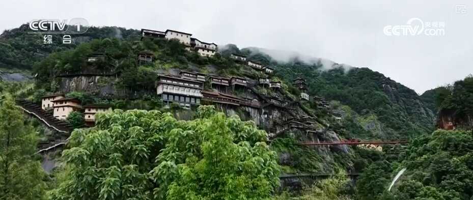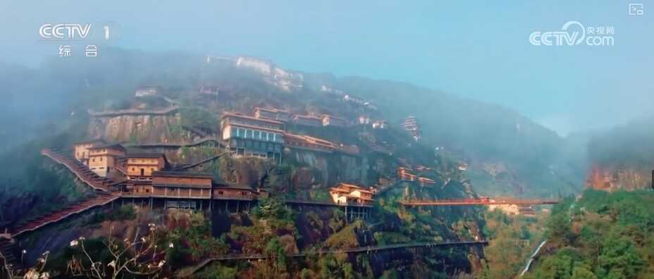 沿着灵山山脉向东北行进,穿过重重山丘,一座架着悬空楼阁的山峰映入眼帘。这里便是隐于山林间的上饶望仙谷景区。