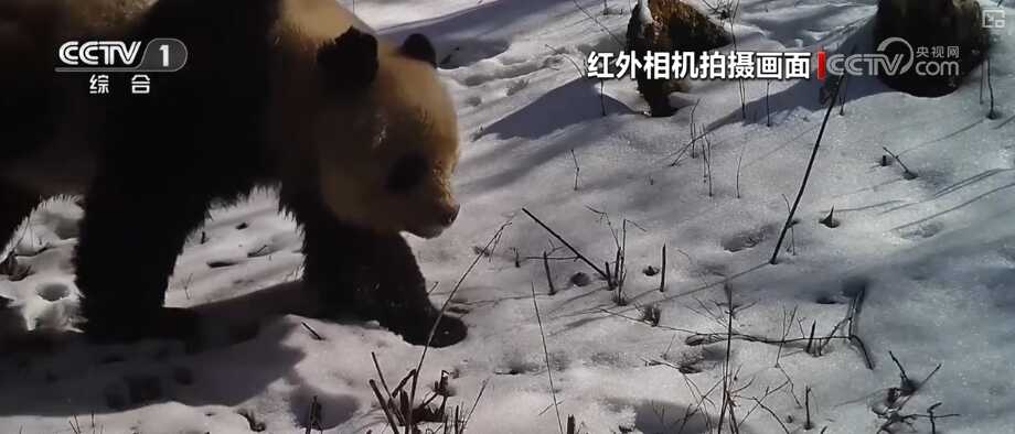 视频中,有些野生大熊猫在冰天雪地里匆匆赶路觅食,有些在倒立撒尿标记领地,有些则在吃竹子。工作人员还惊喜地发现,布设在周至保护区光头山区域的同一台红外相机,在7个月时间里,居然每个月都有秦岭野生大熊猫从镜头前经过。其间,还有羚牛、金钱豹等动物频频亮相。