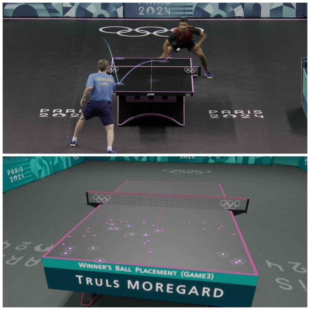 “这是本届奥运会每秒146转‘唯二’的两个球,简单来说,两人都让球在一秒内旋转了146圈,全是扣杀的制胜球,高于男选手平均转速的每秒66.7转。”巴黎奥运会乒乓球转播AI团队负责人、来自上海东方传媒技术有限公司的顾礼华说。