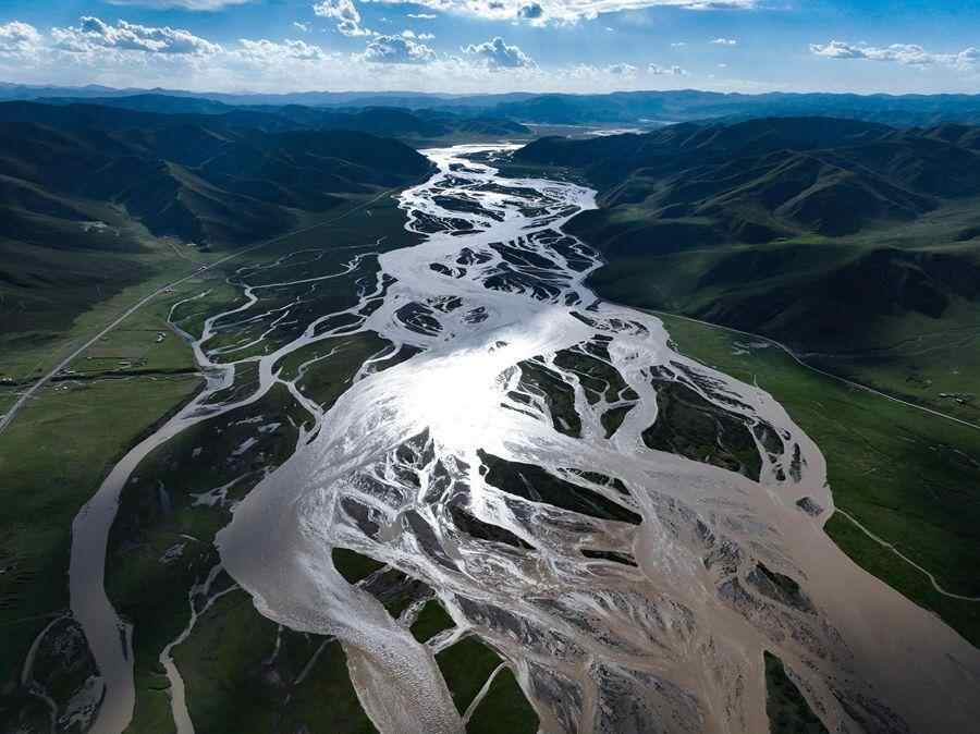 2024年7月10日在甘肃省张掖市肃南裕固族自治县皇城镇拍摄的祁连山景色(无人机照片)。新华社记者 郎兵兵 摄