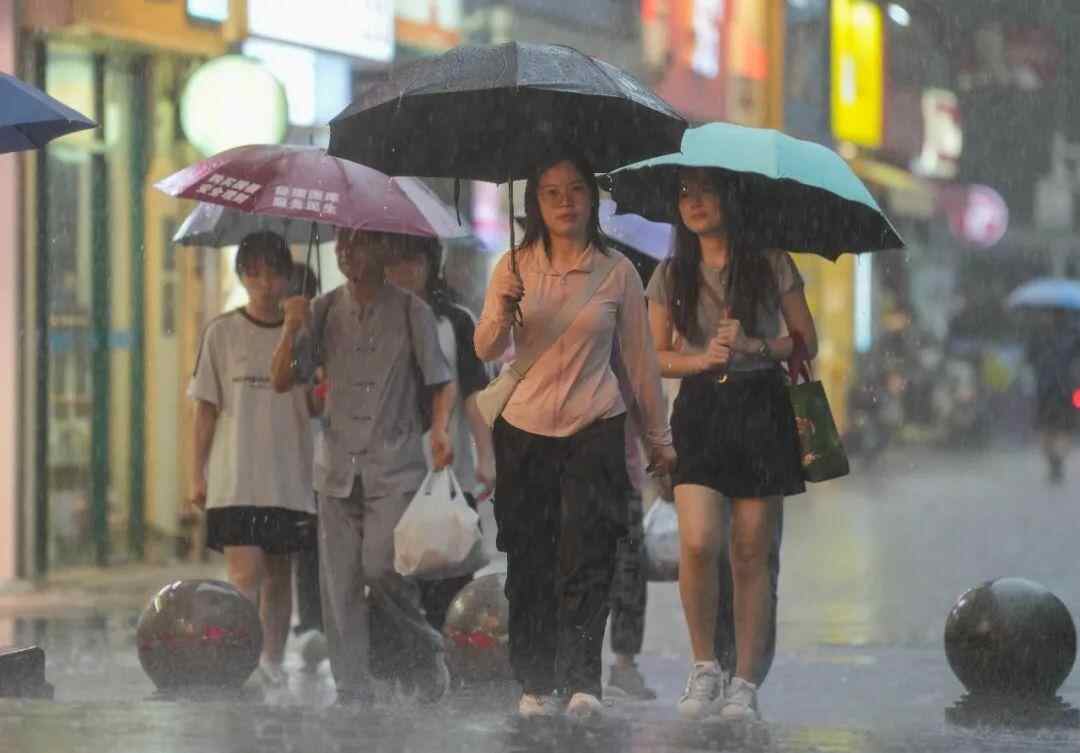 8月17日,广州多区发布“风雨预警”,市民雨中出行 梁怿韬 摄