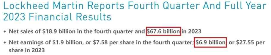 数据显示,2023年,洛克希德—马丁公司的年收入达到676亿美元,净利润69亿美元;雷神技术公司年收入为689亿美元,比2022 年增长2.8%;另一家军工巨头波音公司,去年因一系列安全丑闻而受到欺诈指控和质疑,但2023年的收入仍高达778 亿美元,比2022 年增长了16.2%。
