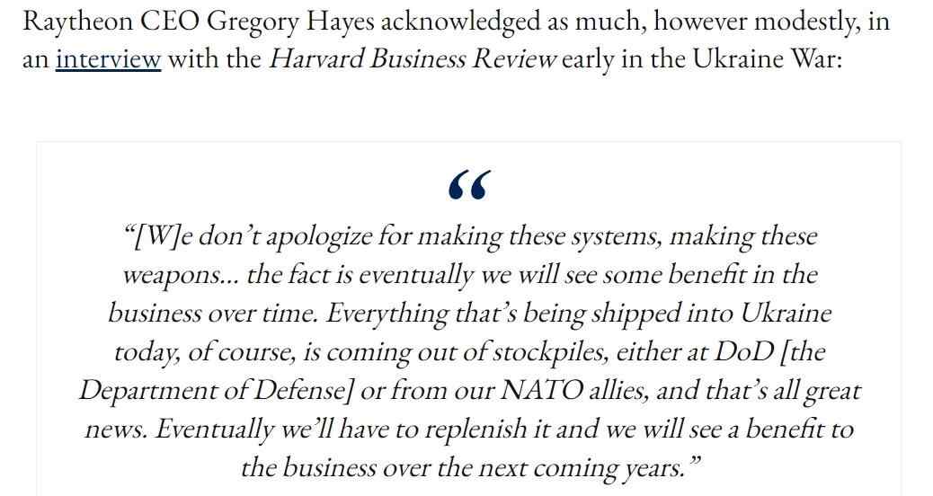 “我们不会为制造这些武器而道歉……事实是,随着时间的推移,我们最终会在这项业务中看到一些好处。当然,今天运往乌克兰的所有武器都是从国防部或北约盟国的库存中提取出来的,这都是好消息。最终我们必须补充库存,我们将在未来几年看到这些业务的好处。”
