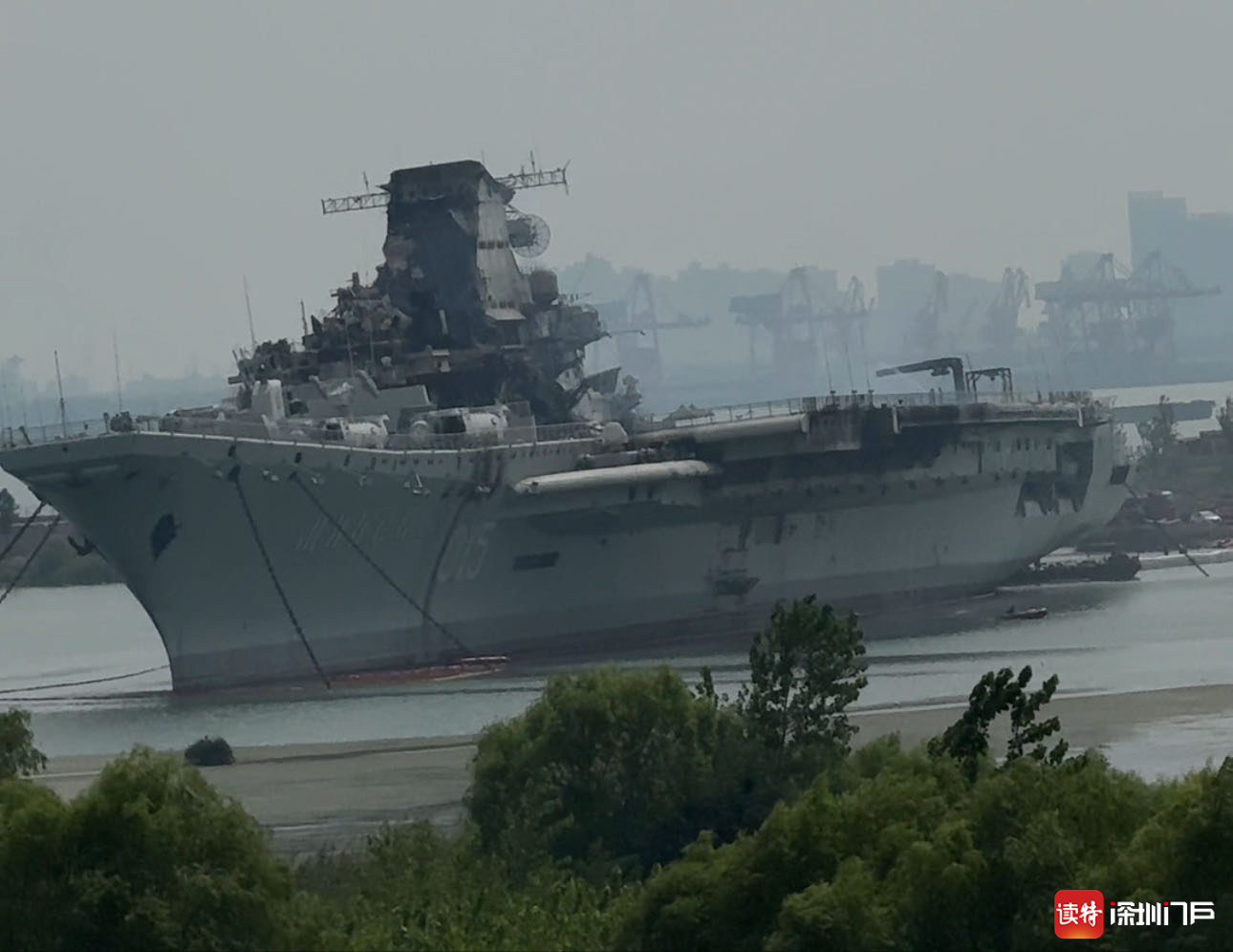 2023年底,读特新闻记者曾从深圳出发前往南通,实地探访明思克航母。(此前报道:明思克航母,你在他乡还好吗?读特记者北上南通,探访这位深圳故“友”)与8个月前的航母相比,如今的航母因受到火焰灼烧而明显发黑。