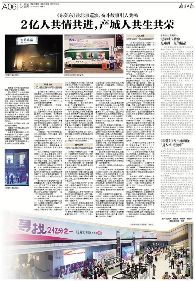《东莞东》到达北京,不仅是一次原创精品剧目的跨城演绎,更是一次东莞文化成果的集中展示。
