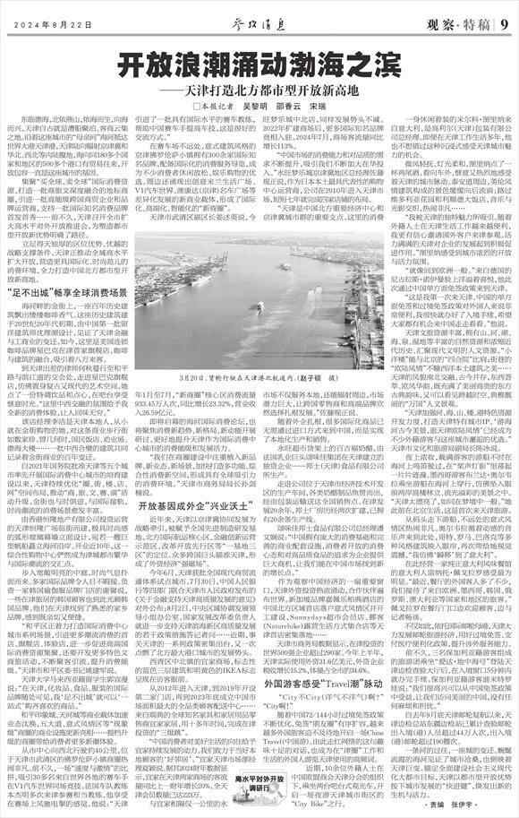 立足得天独厚的区位优势、优越的战略支撑条件,天津正推动全域高水平扩大开放,营造更具国际化、时尚范儿的消费环境,全力打造中国北方都市型开放新高地。