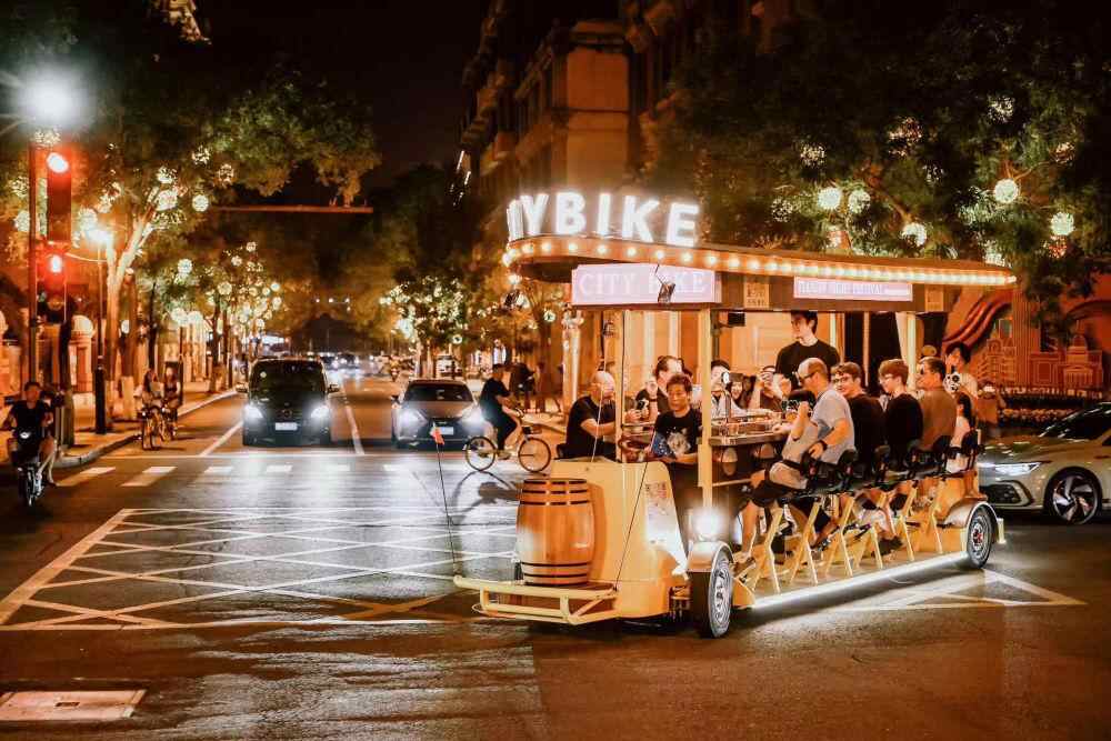 近期,10余位外籍人士在中国欧盟商会天津分会的组织下,乘坐两台吧台式观光车,开启一场夜游天津城市街区的“City Bike”之行。