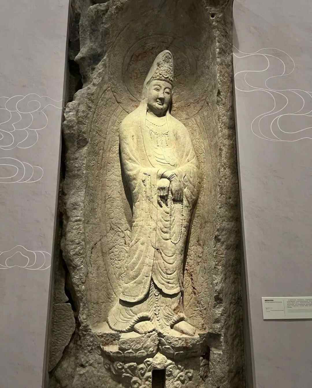 而在浙江省博物馆之江馆区二楼展厅内,石窟造像以另一种方式按下了岁月的“暂停键”:一尊嵌在墙上的烟霞洞白衣观音造像复制品,看起来与真品并无二致,就像刚刚从洞里搬过来的一样。