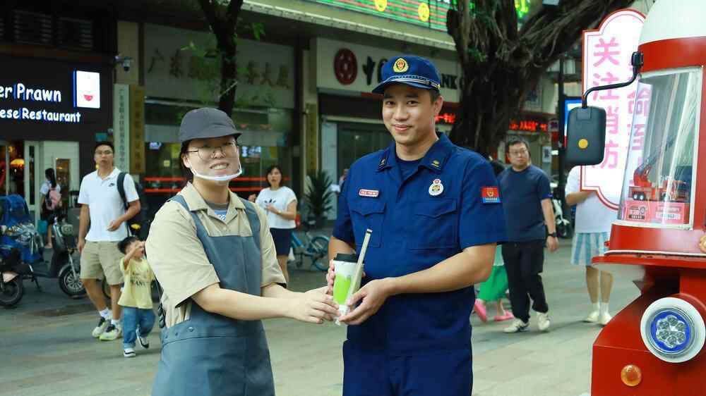 近日,广州市越秀区商务局、大塘街道办事处与茶饮企业一同为越秀区奋斗在户外一线的消防队员、交通干警、环卫工人、外卖小哥、快递配送员、货车司机等送上防暑降温的夏日饮料,传递社会温情。
