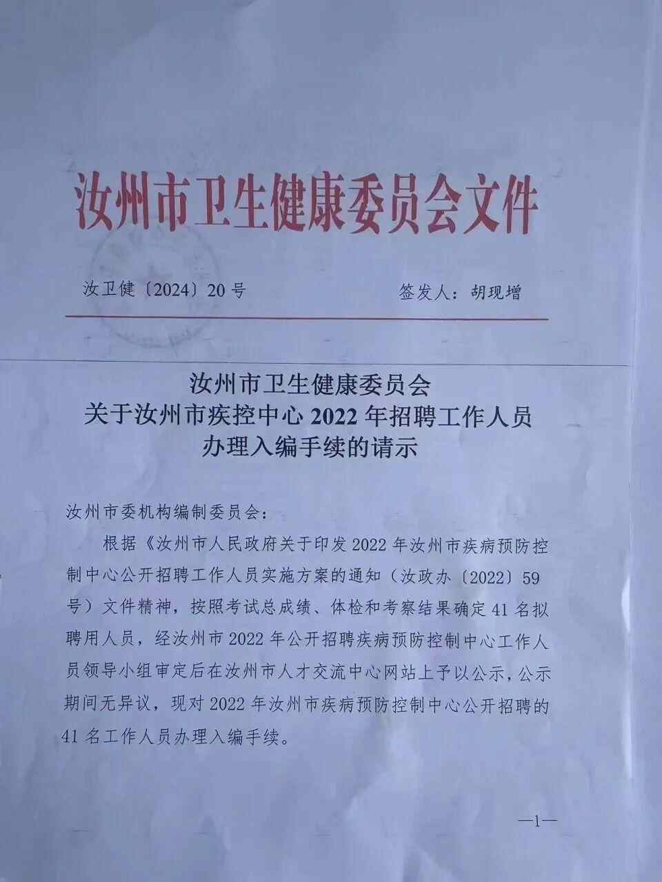 《公告》提到,本次面向社会公开招聘疾病预防控制中心工作人员50名。招聘公告发出17个月之后的2024年2月1日,汝州市人才交流中心官网公示了41名拟聘用人员名单。