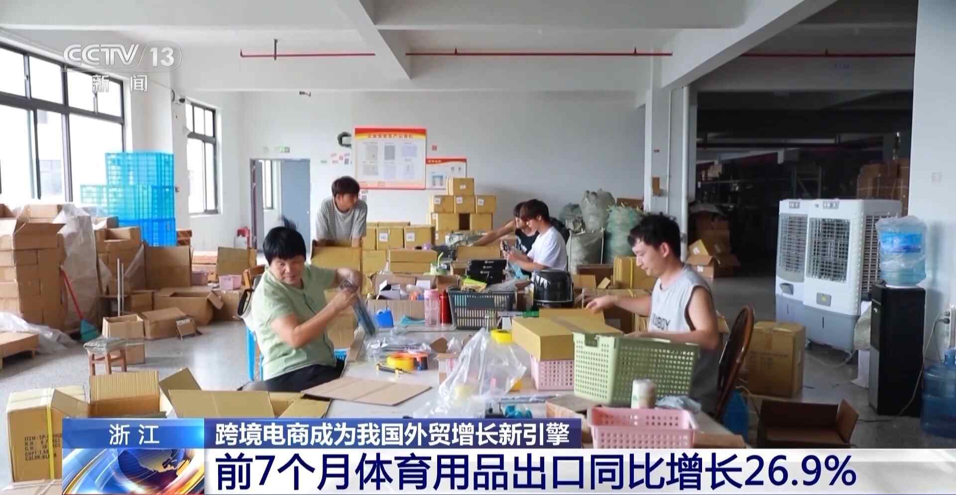 杭州海关所属义乌海关统计分析科 徐晓冰:随着欧洲杯、奥运会等国际赛事的举办,今年义乌体育用品出口迎来“大年”。1至7月,义乌体育用品及设备出口58.1亿元,同比增长37.8%。