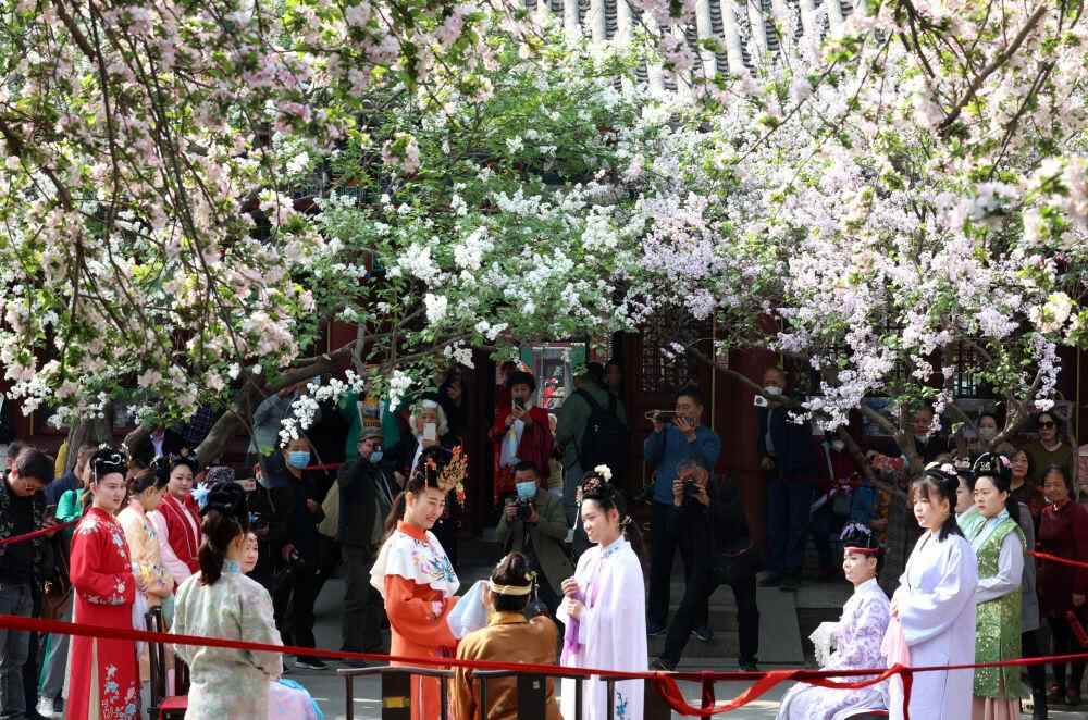 游客在正定荣国府景区观看实景演出。梁子栋 摄