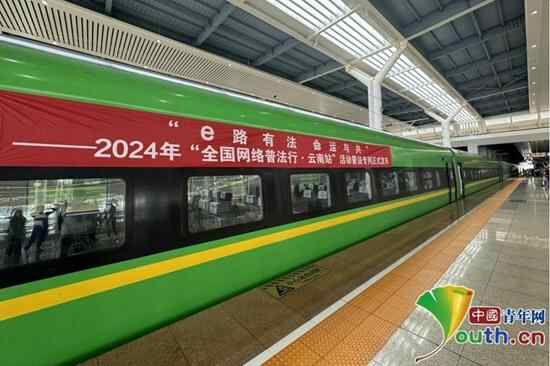 作为2024年“全国网络普法行·云南站”活动的亮点之一,以“e路有法命运与共”为主题,在中老铁路昆明至磨憨段之间打造网络普法特色主题专列,是一次“走新”又“走心”的尝试,通过线上线下相结合的宣传场景,营造浓厚的网络普法氛围。