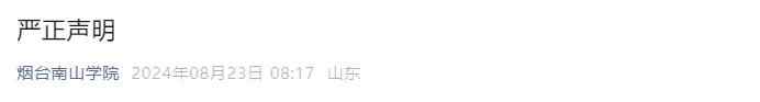 近期,QQ、微信、抖音、快手、小红书等各网络平台上出现名为“烟台南山学院表白墙”“烟台南山学院万能墙”“A南院表白墙”等账号,个别账号假借我校名义建立“24级南院新生答疑群”“24级新生入学群”等。该类账号未获学校授权,擅自使用学校名称及标识,存在广告营销和信息失实等风险,可能会对师生学习生活带来不良影响。学校现严正声明如下: