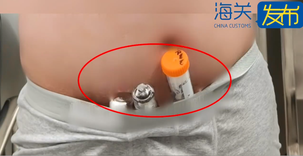 日前,一名男性旅客经莲塘口岸旅检大厅“无申报通道”进境,被海关关员拦截检查。