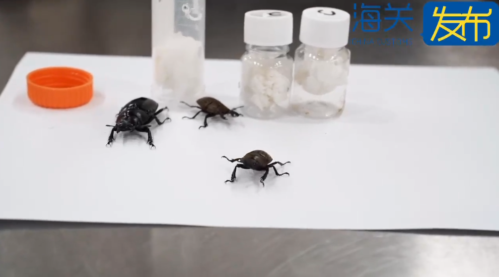 经检查,海关关员发现该名旅客的内裤中藏匿了3个透明容器,每个容器内分别装有1只甲虫,共计3只。近日,经专业机构鉴定,查获的3只甲虫为麋鹿鬼艳锹形虫,属于外来物种。