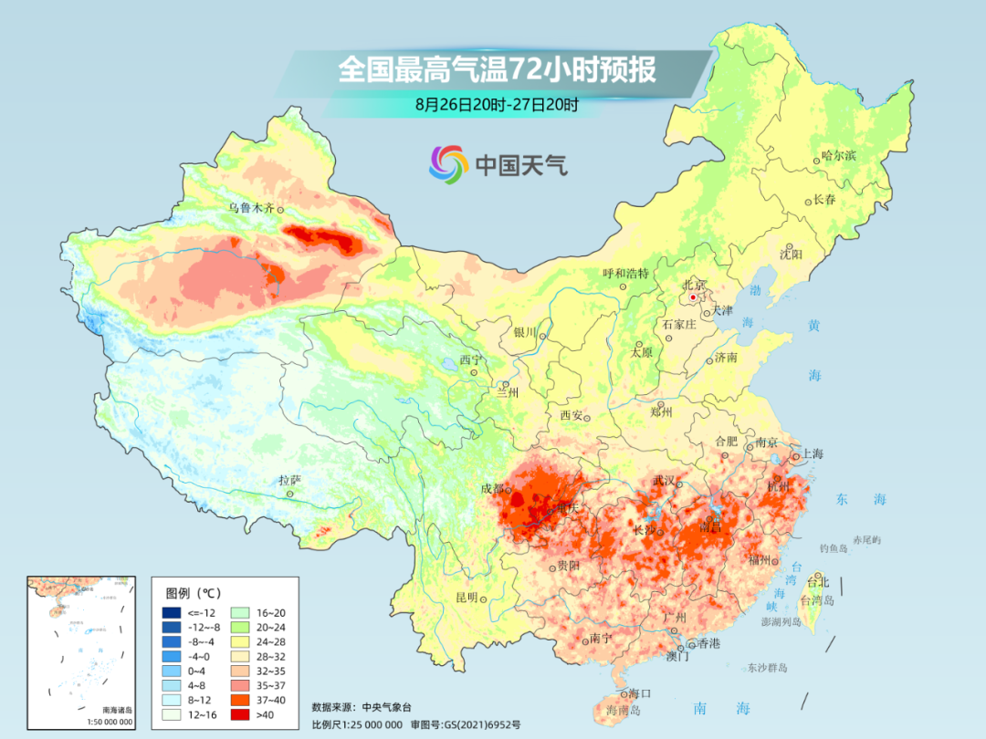因此,在这样强盛的副高控制下,一直到27日,四川盆地、陕西南部及关中、江汉、江淮西部、江南中西部等地都会有持续的高温天气,日最高气温普遍有35~37℃,局地可达40~42℃。28日之后,江汉及江南东部高温将有所减弱,但之后高温天气可能还会再度发展,暑热难退!