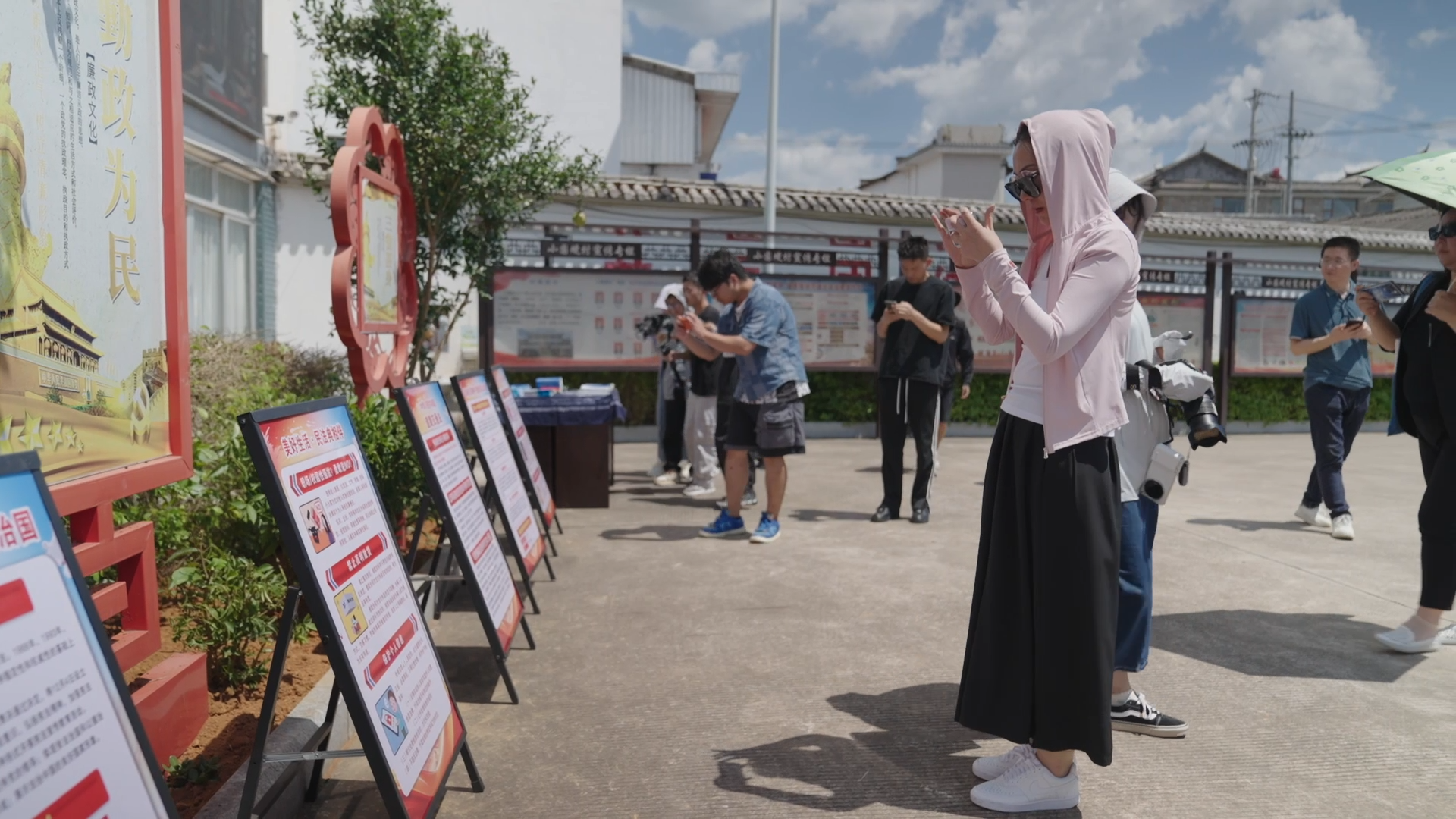 在巍山县文华书院,一部部生动有趣、接地气的普法“微短剧”吸引了群众的目光。