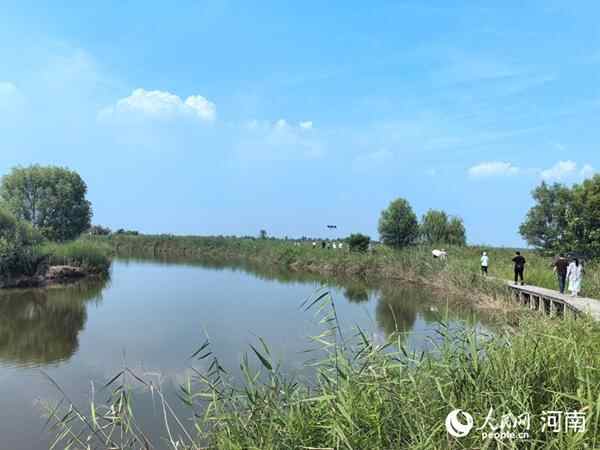 人们走在孟津黄河湿地国家级自然保护区的步道上。人民网 于思远摄