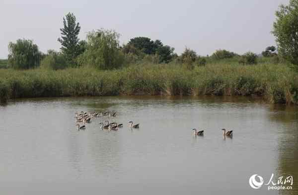 国家二级保护动物鸿雁在孟津黄河湿地国家级自然保护区栖息。人民网 于思远摄