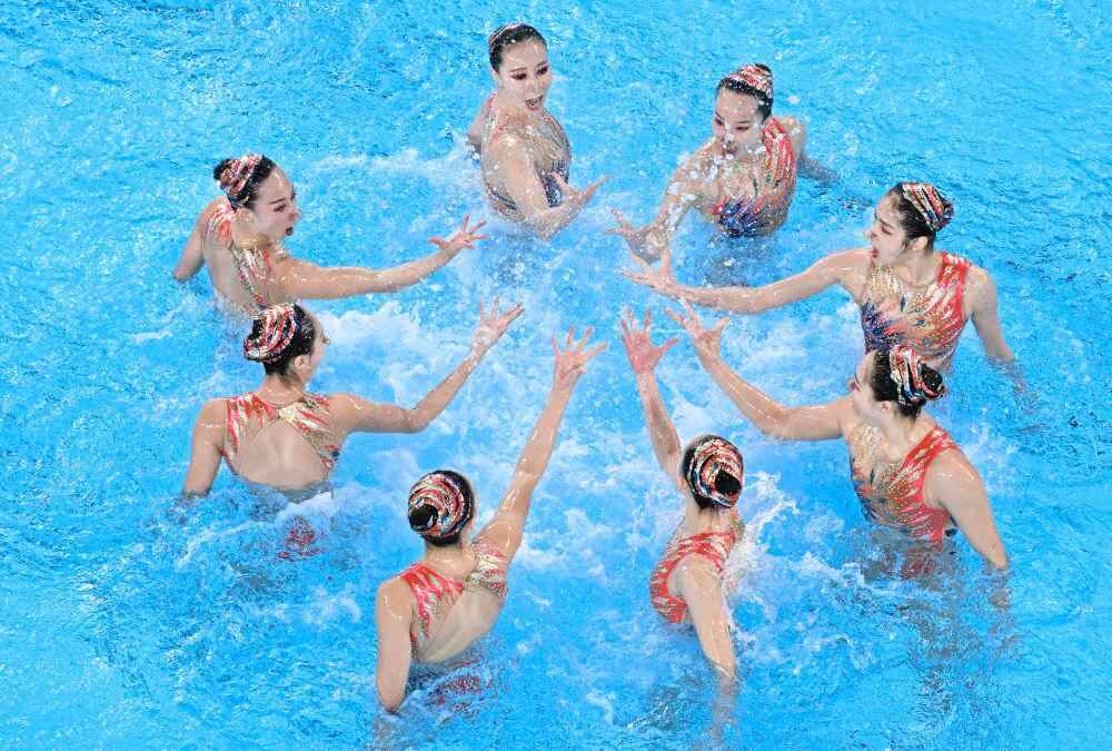 让世界惊艳的还有中国花样游泳队,姑娘们精心设计的动作融合了武术咏春、埃菲尔铁塔和甲骨文,东方与西方结合,体育与艺术交融。