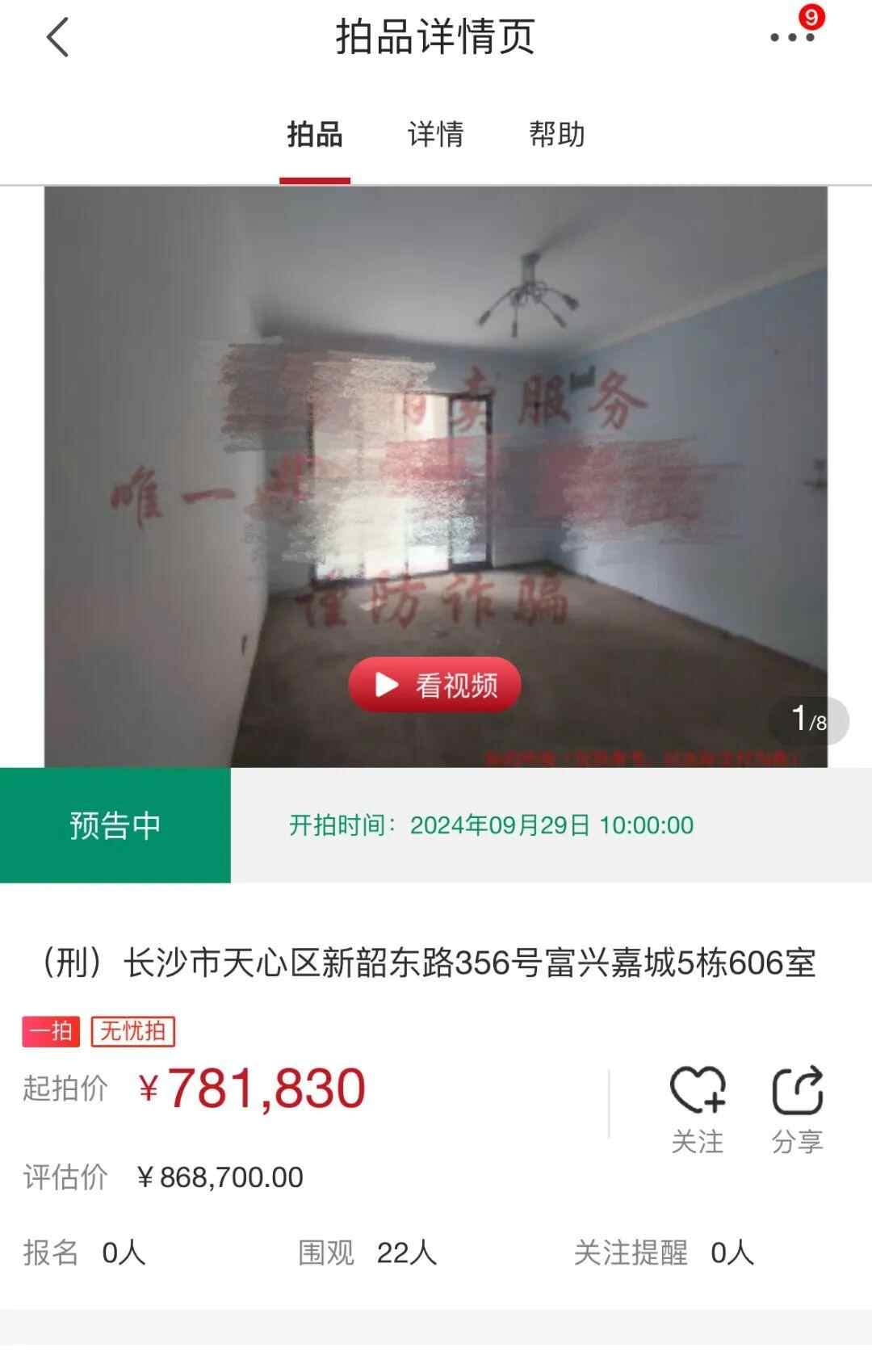 记者从长沙一名法拍房中介彭先生处获悉,这批房子是8月24日被统一挂上网的,“因为刚挂上去,暂时还没有人来问。都挂在京东上面,87套房,5个小区。半山壹号吉联苑20套(毛坯),辉煌国际城15套(毛坯),富兴嘉城30套(部分带出租装修),才子嘉都7套(毛坯),中航城15套(毛坯)。”