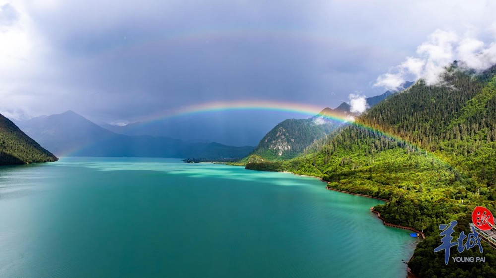 7月7日,雨后彩虹。工布江达县的巴松措是林芝著名景点