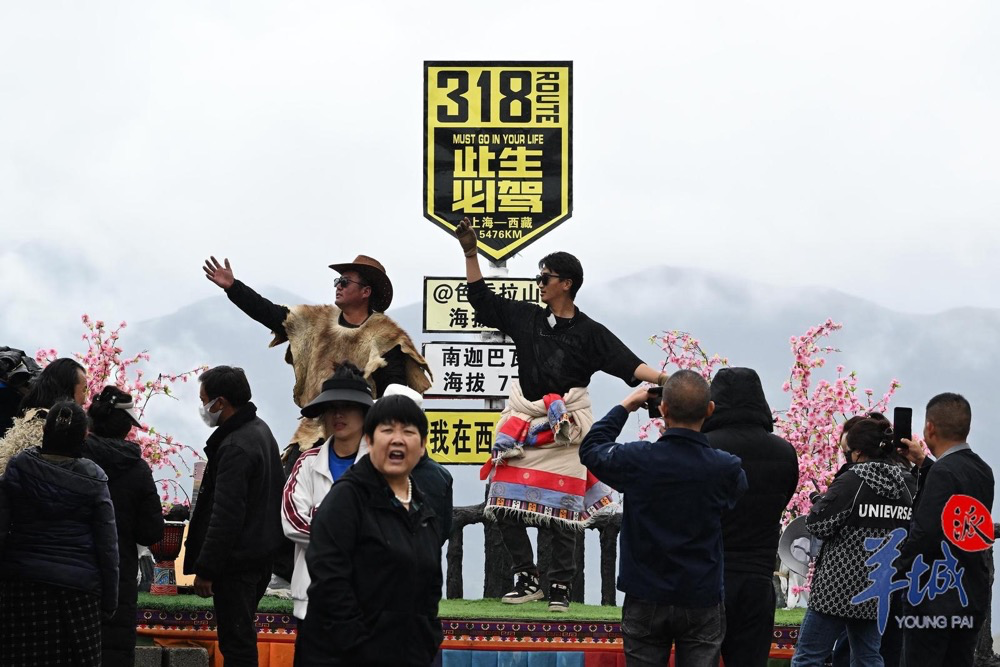 7月9日,色季拉山口318国道的打卡点,很多游客会在此停留观赏南迦巴瓦峰