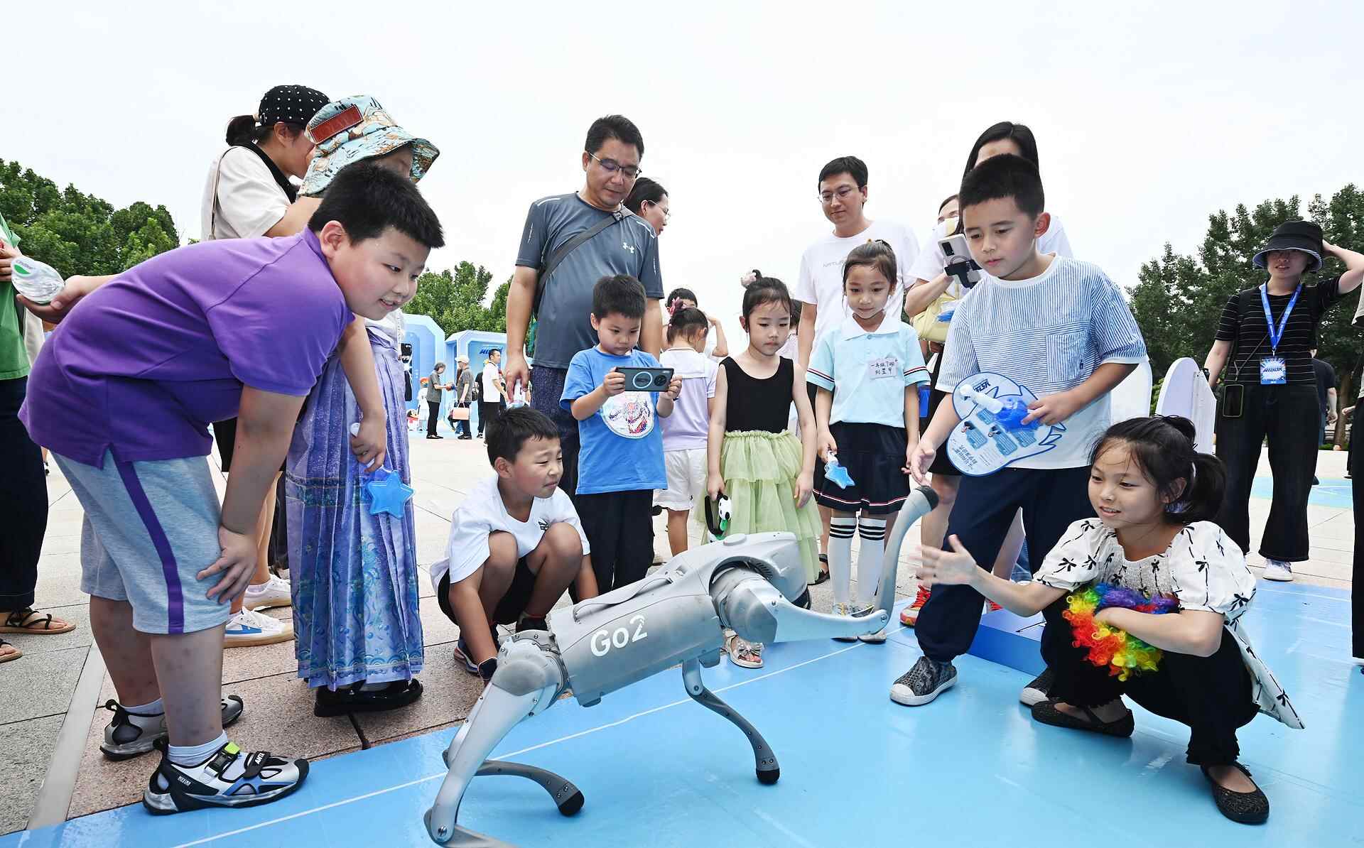 跳舞、倒立、躲避障碍……机器狗Go2与孩子们握手,摇头摆尾登上舞台,萌翻全场。一同登台的还有机器人H1,它是全球首个学会原地后空翻的机器人。宇树科技创始人兼首席执行官王兴兴说:“机器人的AI能力,使得机器人能像人一样感知、思考和行动。”