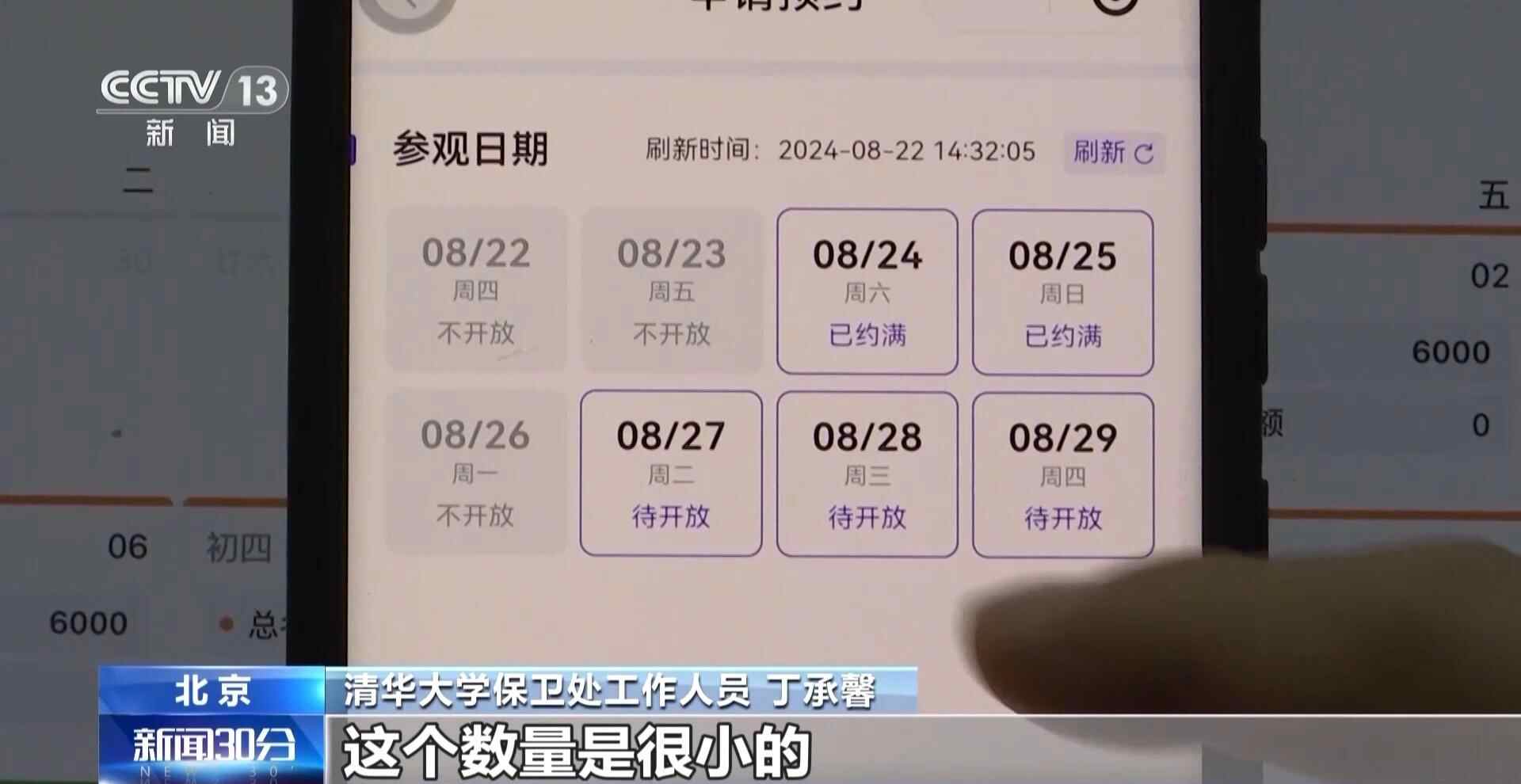 清华大学保卫处工作人员 丁承馨:一个是我们每个人180天之内只能预约一次,就是“黄牛”即使是想要代替别人预约,一年也最多只能约两次,这个数量是很小的。第二个我们同时有一个实名认证的环节,也限制了“黄牛”去做这个事情。