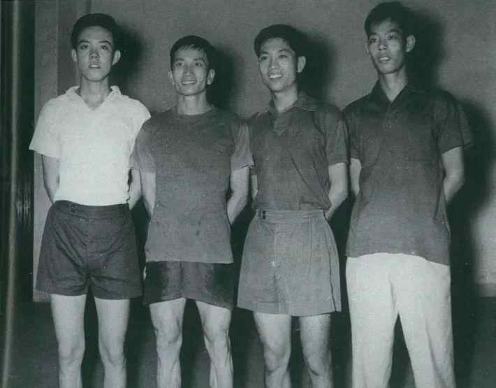 1958年全国锦标赛前四名合影,左起:容国团、姜永宁、庄家富、胡炳权