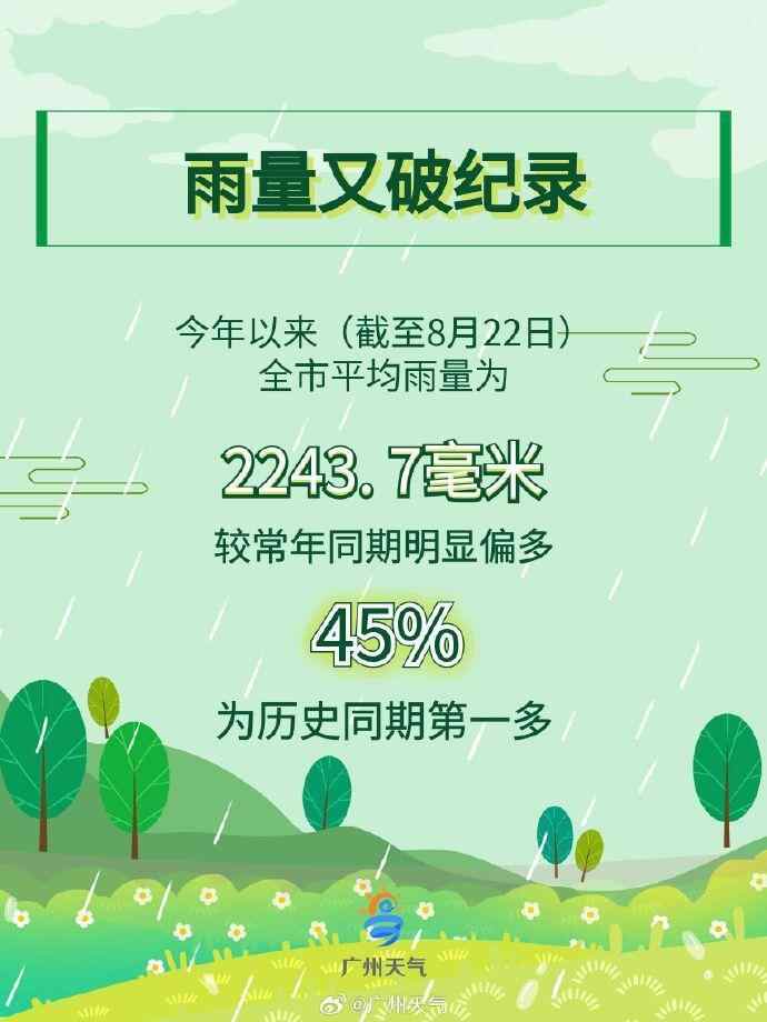 这在广东可不敢想,因为大热天雷雨喜欢随机“洒水”,得等到秋风起才是晾晒的最好时机。根据广州市气象部门统计,今年以来(截至8月22日)广州全市平均雨量为2243.7毫米,较常年同期明显偏多45%,为历史同期第一多。
