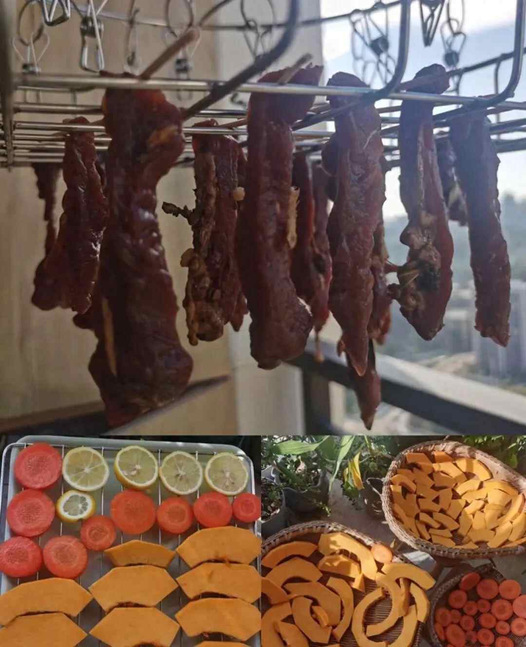 重庆市民“热”中作乐,将这高温暴晒的天气利用起来,在阳台晾晒食物,自制牛肉干、蔬菜干。据说,牛肉晒了一天就嘎嘣脆——