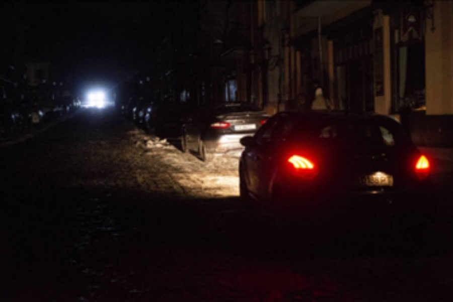 据报道,基辅26日多地水电供应中断,新闻直播突然黑屏。