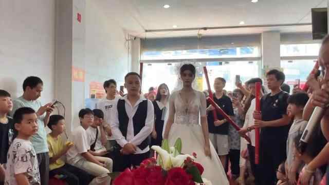 “婚礼是上周四(22日)举行的,因为就在镇上的正街举行,酒店到新郎家也很近,只有一百多米,所以没有迎亲坐车,是全程走过去的,很轰动,现场很多人围观拍视频。”璇璇介绍,新郎是三四个月前在抖音上刷到自己的化妆视频,然后通过私信联系,确定自己作为婚礼的化妆师,还请自己为他们的婚礼拍摄了一些视频。