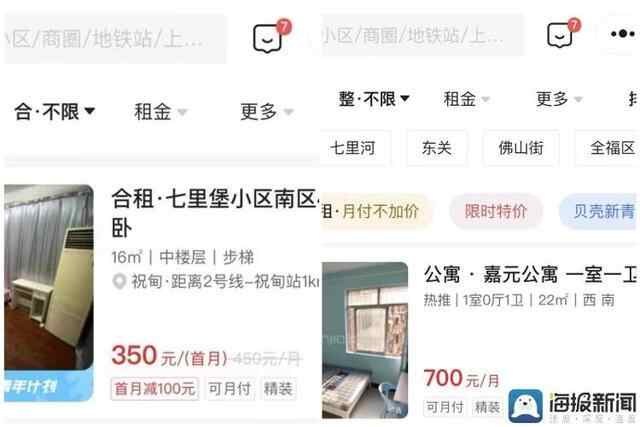 记者在贝壳找房小程序上比对价格发现,济南市的合租房中,以历下区、历城区等几个区域内的老城区租房价格更为便宜,最低租金稳定在300元-400元/月,而整租的每月最低租金要比合租贵400元左右。