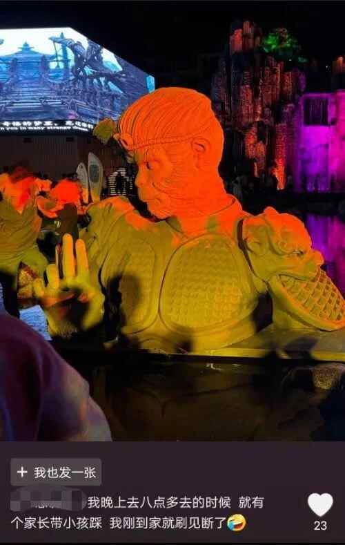 对于清源水城的黑神话悟空雕塑被打卡游客踩坏,有网民在社交媒体上留言表示,“我晚上去八点多去的时候 就有个家长带小孩踩,我刚到家就刷见断了。”还有网民表示雕像旁边有水池,孩子们在旁边玩耍有安全隐患。