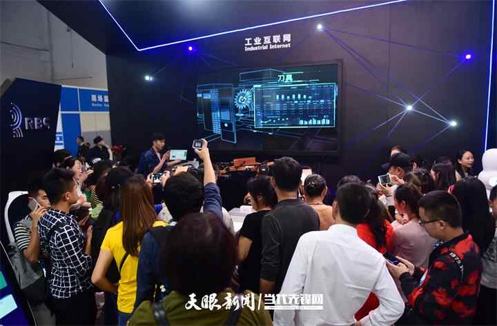 在2018年贵阳数博会1号展馆,参观者正在体验“工业互联网”大数据平台展示。杨涛 摄