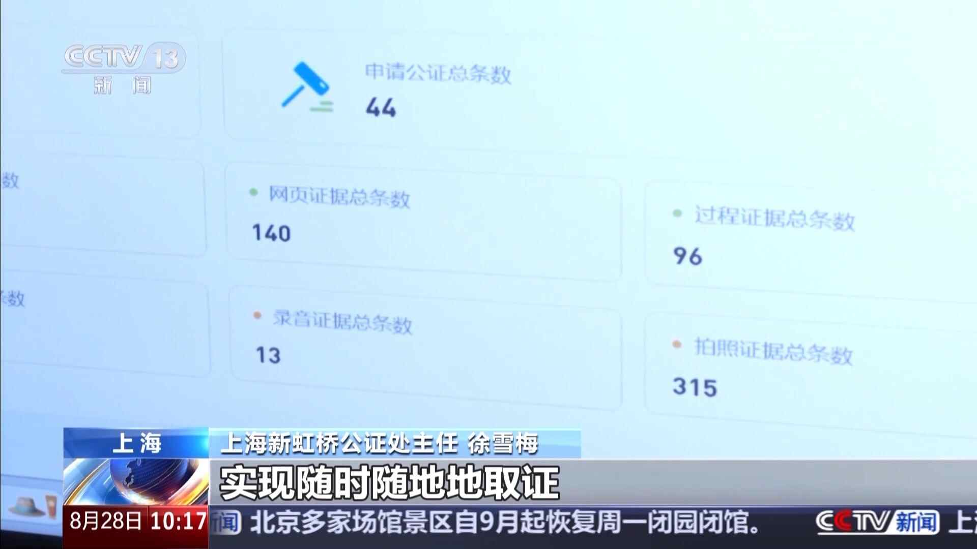 上海新虹桥公证处主任 徐雪梅:我们通常把它称作您身边一位二十四小时在岗的公证员。因为它二十四小时都在线,包括文件存证、内容存证、录音录像录屏,然后网页包括拍照和过程证据,客户可以不受空间的或者时间的限制,随时随地取证。