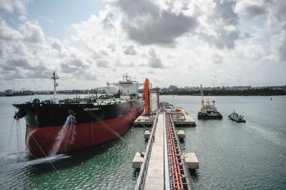 这是8月15日拍摄的位于肯尼亚蒙巴萨港的蒙巴萨油码头。新华社记者王冠森摄