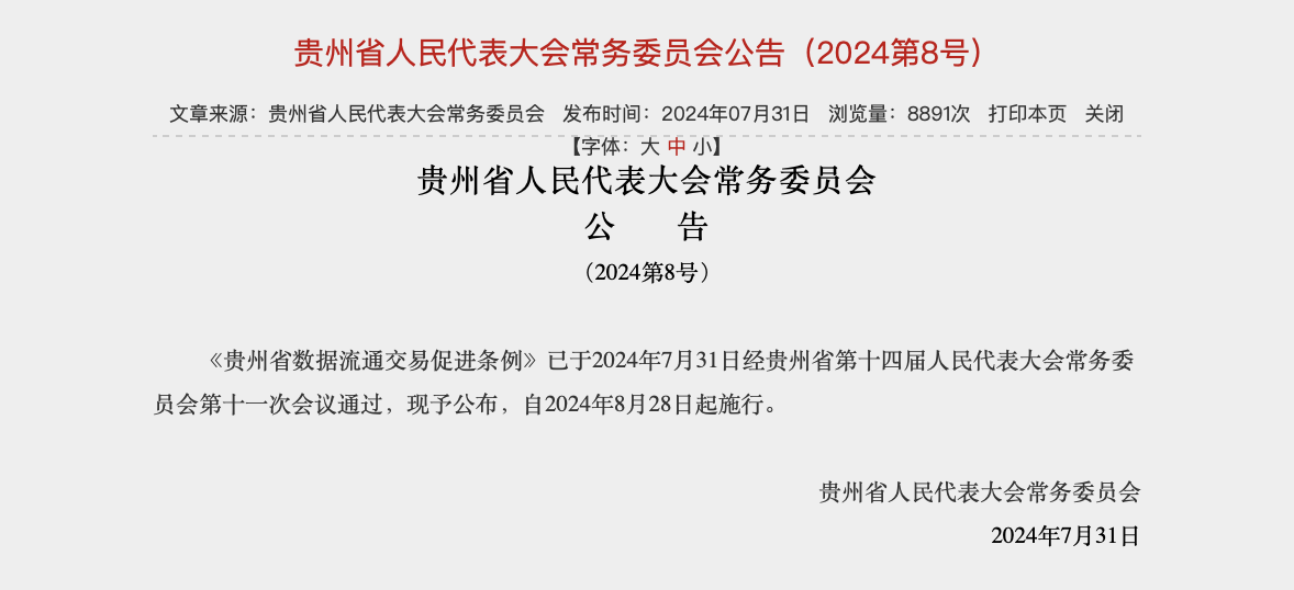 8月28日,《贵州省数据流通交易促进条例》正式实施,这将更好地促进贵州数据流通交易,规范数据流通交易行为,保障数据安全。