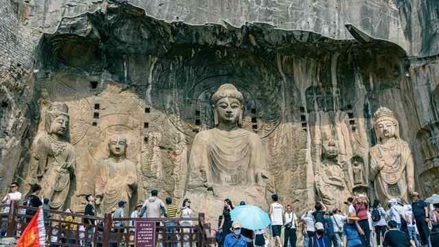 官网信息显示,龙门石窟开凿于北魏孝文帝迁都洛阳之际(公元493年),之后历经东魏、西魏、北齐、隋、唐、五代的营造,形成了南北长达1公里、具有2300余座窟龛、10万余尊造像、2800余块碑刻题记的石窟遗存。