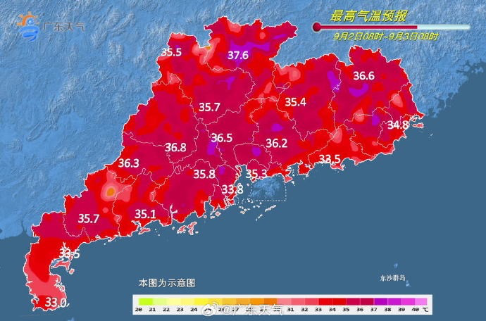 2日-4日,广东省大部多云到晴,午后局部有(雷)阵雨。最高气温:沿海市县33℃~35℃,其余市县普遍介于35℃~38℃。