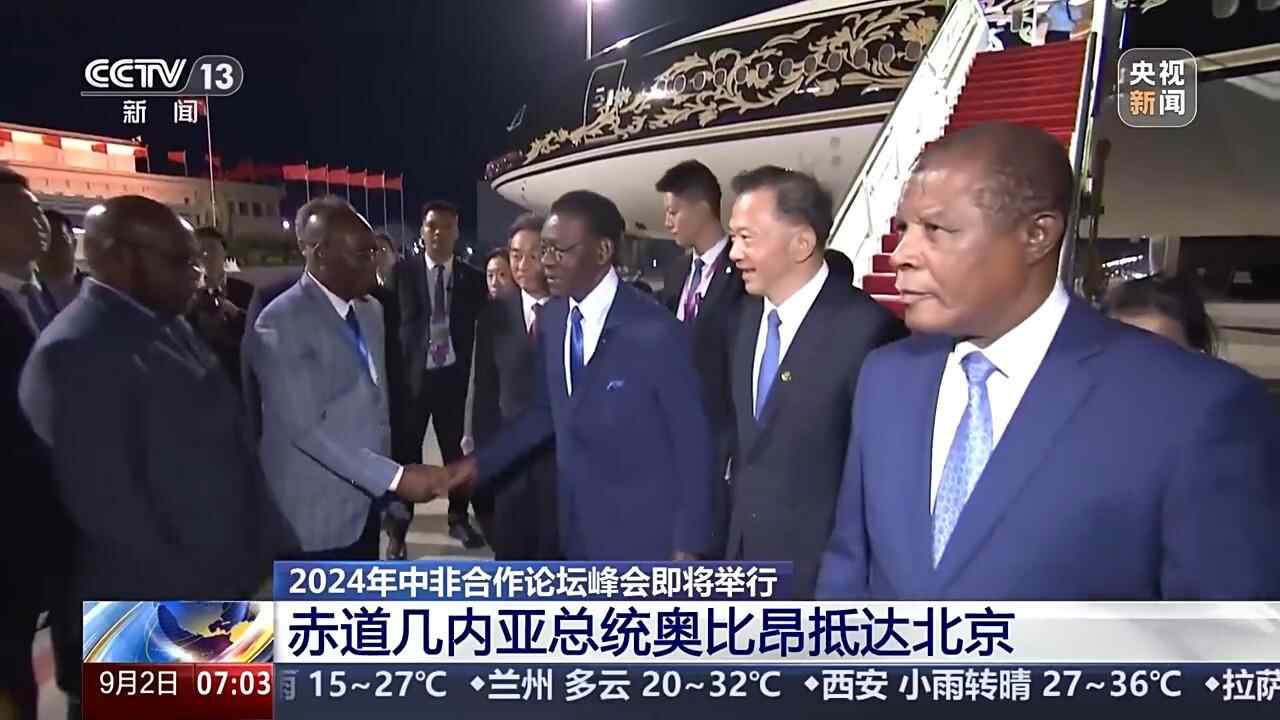 9月1日晚8点30分,赤道几内亚总统奥比昂乘专机抵达北京,出席即将举行的2024年中非合作论坛峰会。