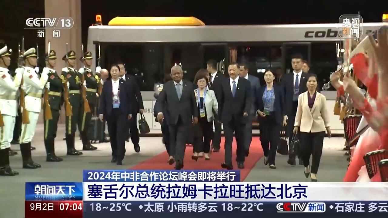 2024年中非合作论坛峰会将于9月4日至6日在北京举行。昨天(1日)晚上到今天(2日)凌晨,赤道几内亚、塞舌尔、刚果(金)、吉布提、南非、莱索托等国元首和政府首脑先后抵达北京,出席2024年中非合作论坛峰会。