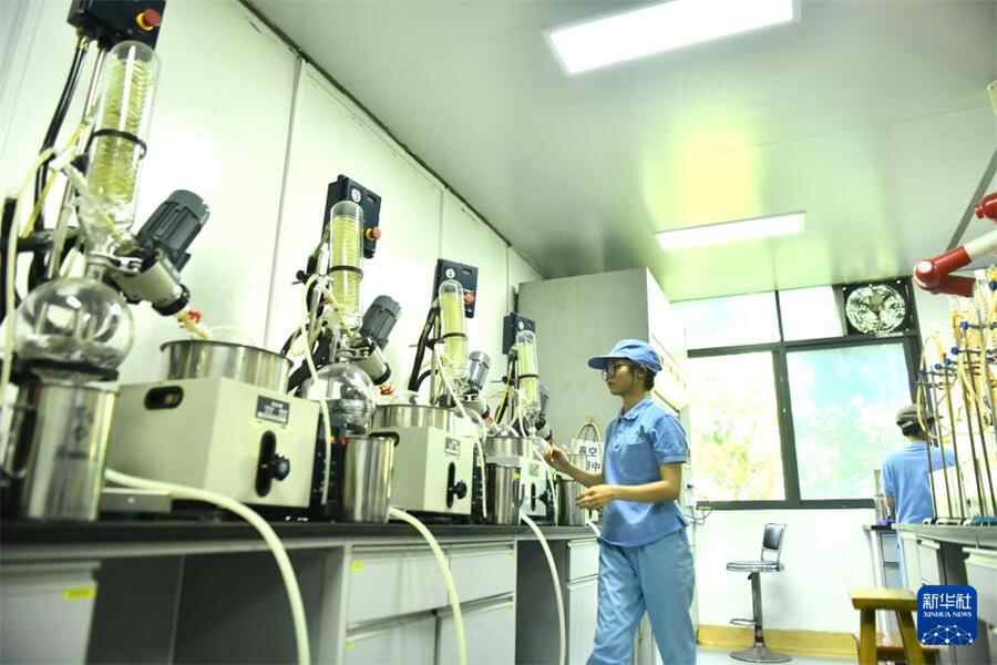 在广西仙草堂制药有限责任公司,技术人员在检测青蒿原料(8月27日摄)。新华社记者 黄孝邦 摄
