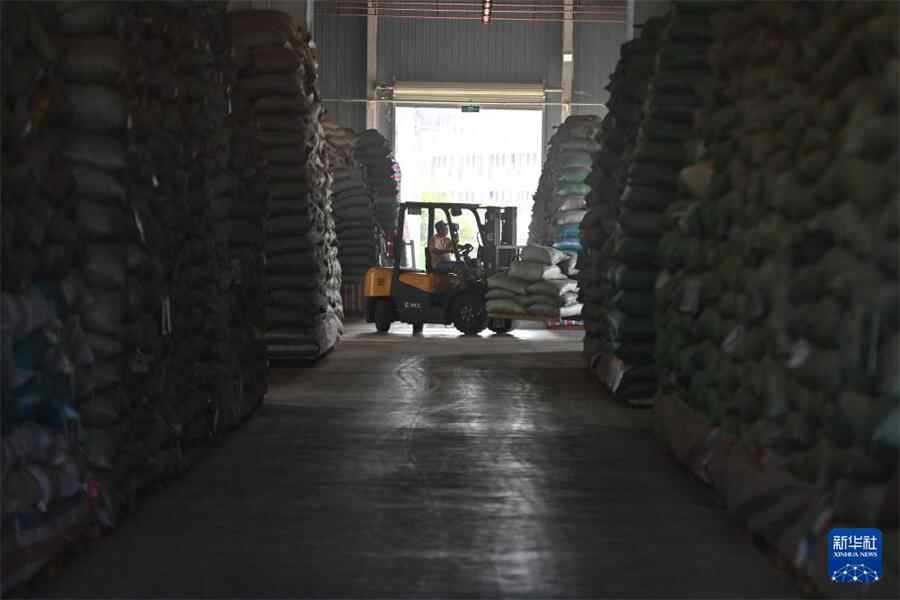 在广西仙草堂制药有限责任公司,工人在搬运青蒿原料(8月27日摄)。新华社记者 黄孝邦 摄